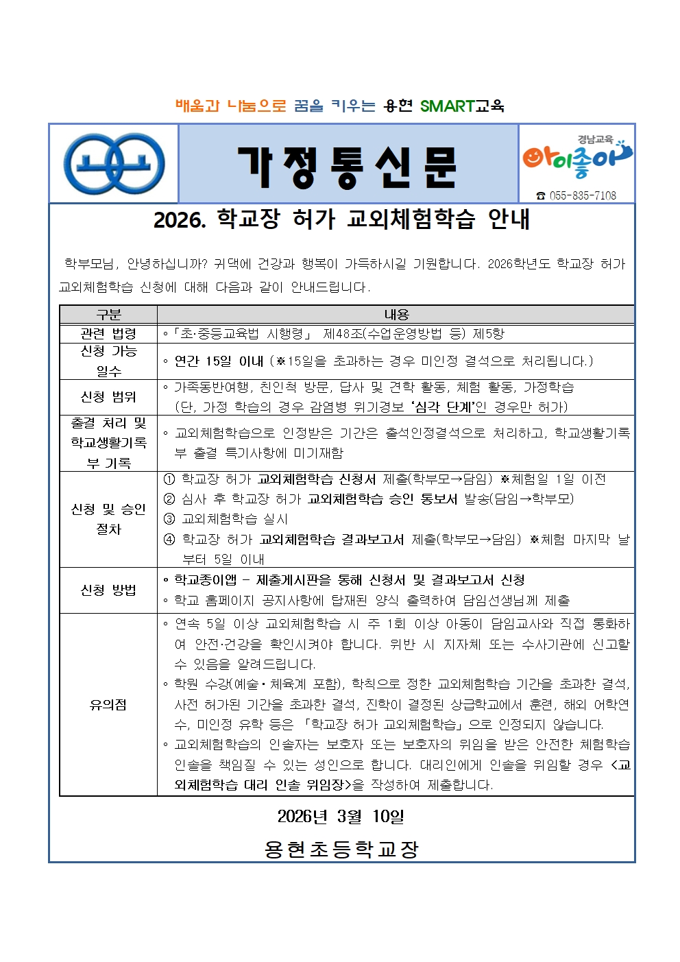 2026. 학교장 허가 교외체험학습 안내