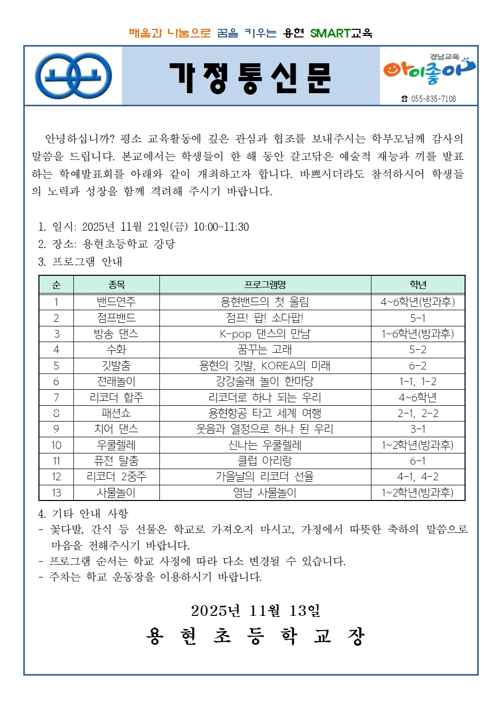 용현초 학예회 안내장